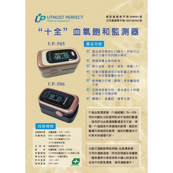 醫療器材許可證所載品名:“十全”血氧飽和監測器